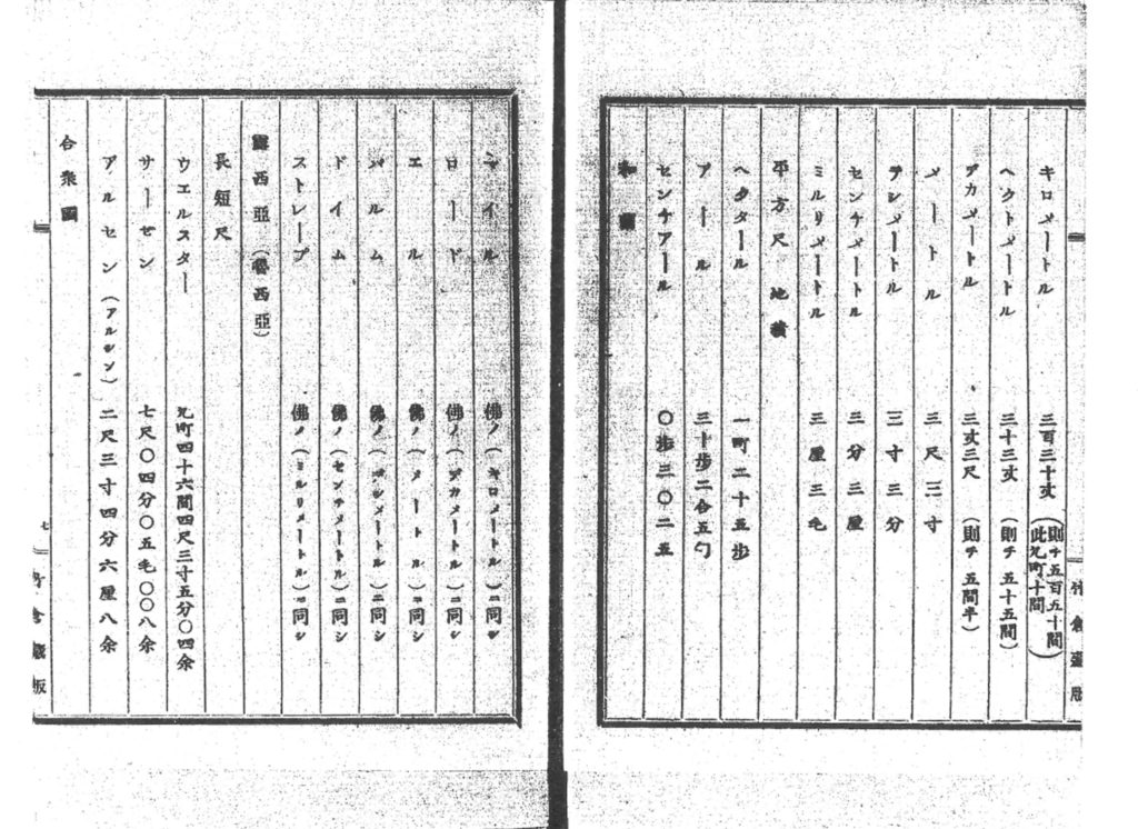 「これ、分かります? 西洋の言葉でいう“インチ”“ヤード”などの単位が、日本の単位にするとどの程度のサイズを示すのかが書いてあります。これを僕の先祖が書いて出したんですよね。“各国貨幣度量衡対照録”という題名で。明治10年ごろに本木昌造さんによって西洋活字が日本に入って来た頃です。つまり昔は本を作って出すという、出版社的なこともやっていたんですね」