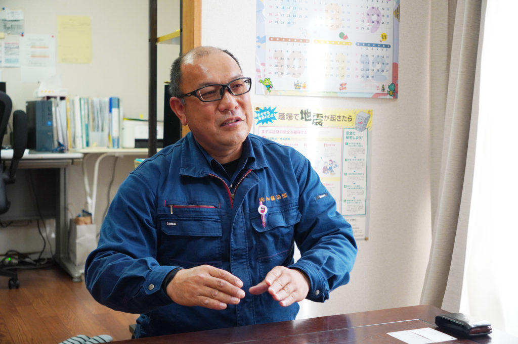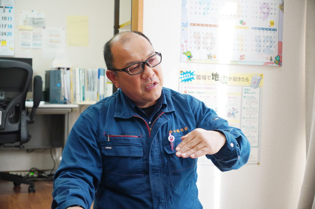 「父親が65歳の時に引退を考えていると相談をされました。従業員もほとんどが父と同世代だし今会社を畳めばきれいに終われるという考えだったようです。ただそれを聞いてもったいないという気持ちと寂しさがこみあげてきたんですね。業績も順調に伸び、自治体から公共の仕事を請ける指名(※1)が受けられるようになって数年、ここからという時だったからです。」