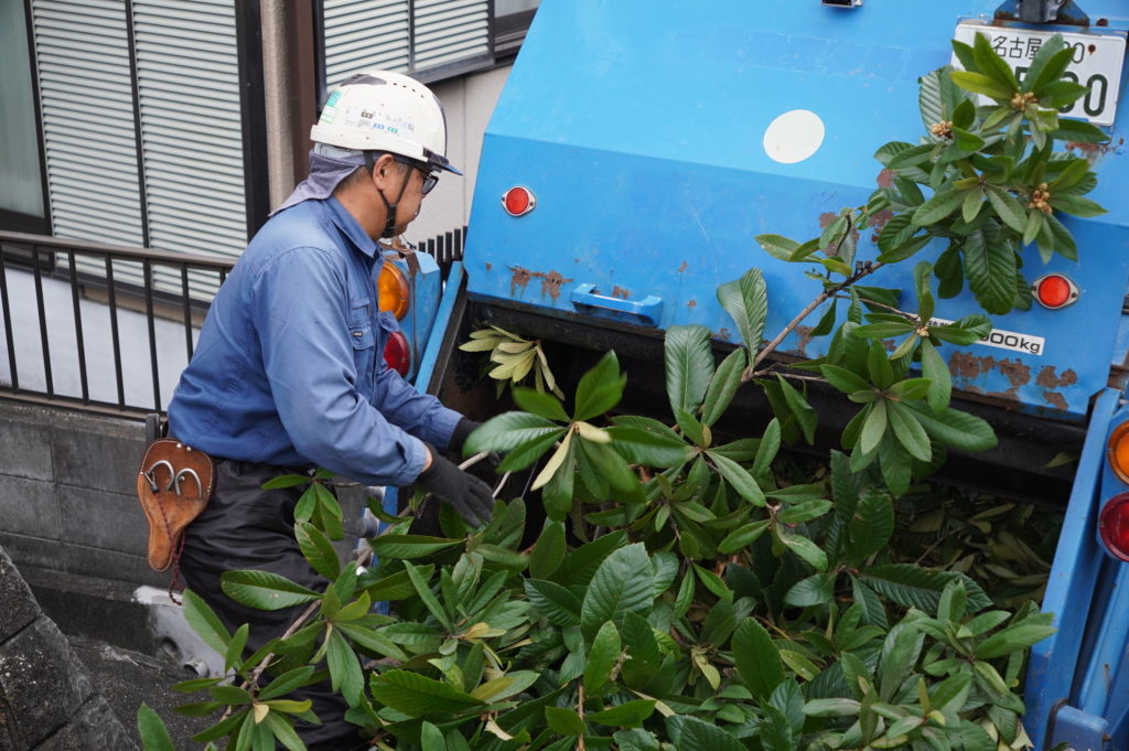 大きな枝が次々と運びだされ、パッカー車へと詰め込まれていきます。落ち葉や枝をきれいに片づけたら報告書に記載する写真を撮って作業は終了。この日は過ごしやすい気温で作業も捗ったよう。