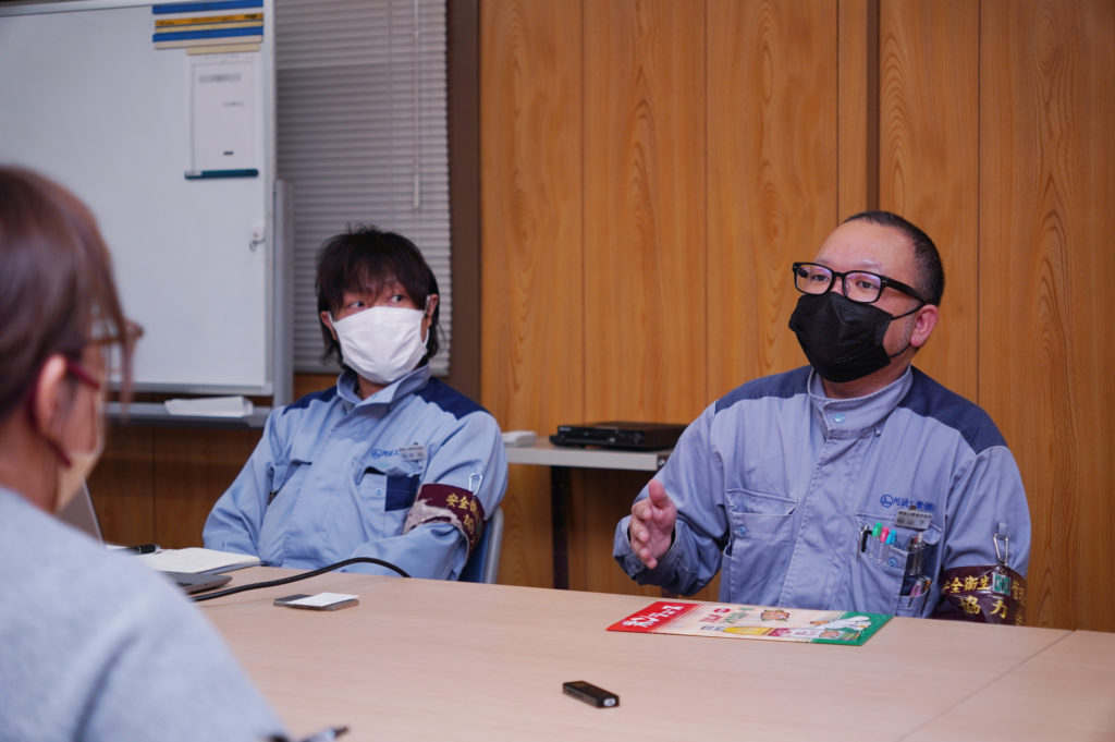 現在は山下さんをはじめとする30~40代が中心となり、風通しの良い会社づくりに取り組んでいるそう。仕事のやりがいや福利厚生の充実など大手企業に属するゆえの安定感はもちろんのこと、現場主導で問題提起から解決まで自主的に動ける機動力こそが阿波工業の強みであり面白さなのだと感じました。
