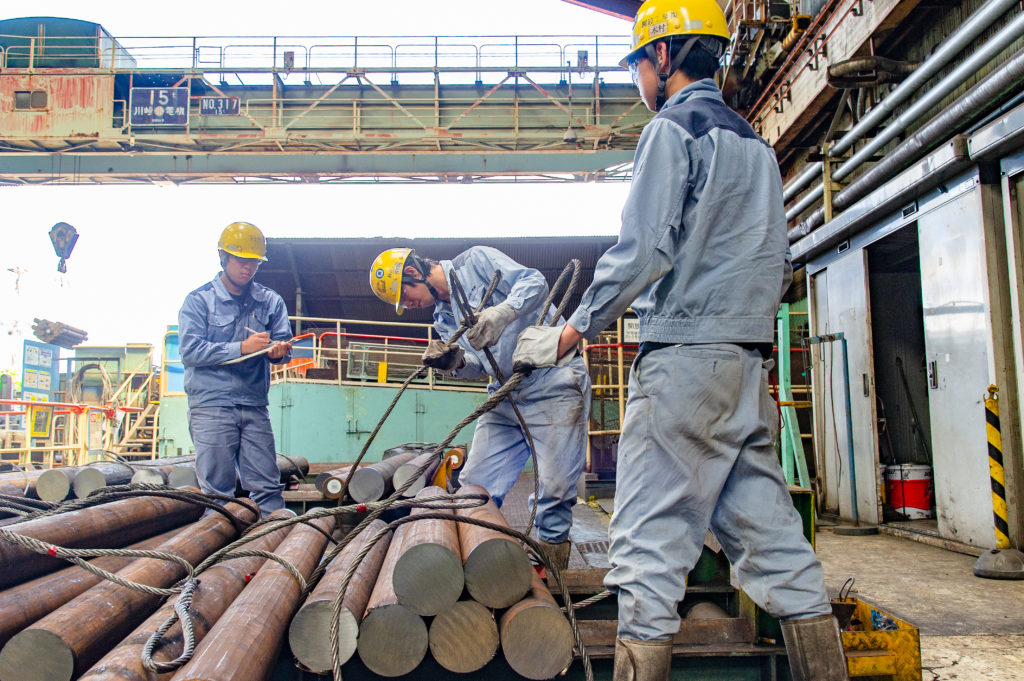 「JFEスチール知多事業所では身近な自動車部品や建造物をはじめとする様々な鋼鉄部品を製造していますが、僕たちが携わるのはその製造に付随する作業で、加工前の材料の準備や出来上がった鋼管の切断や加工、製品の搬送になります。」