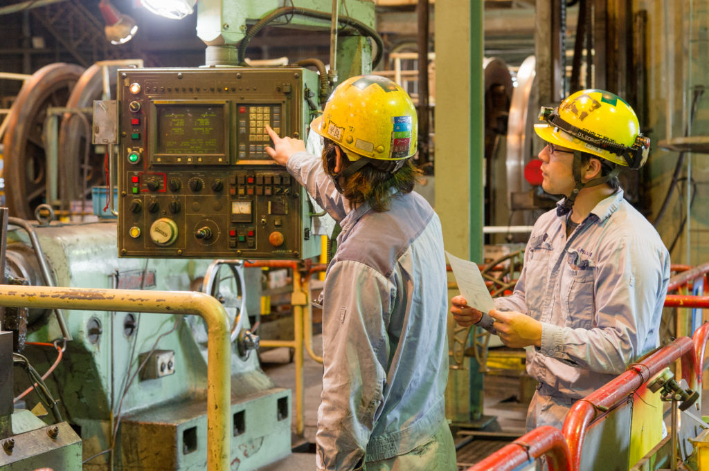 「実際に僕が担当しているのは中径シームレスというパイプの切断と加工です。パイプといっても長さは5m以上、重さは10トン以上あるので、例えるなら車14台分くらいの重さになりますね。」