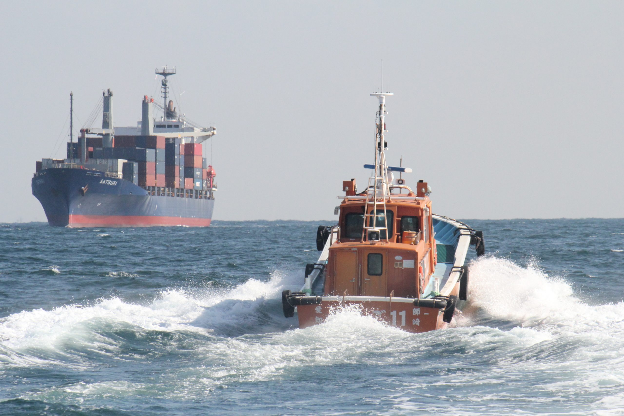 私たちは、パイロットボート(小型船舶)を運航し、水先人(パイロット)を大型船舶まで安全に送り届ける業務を行っています。