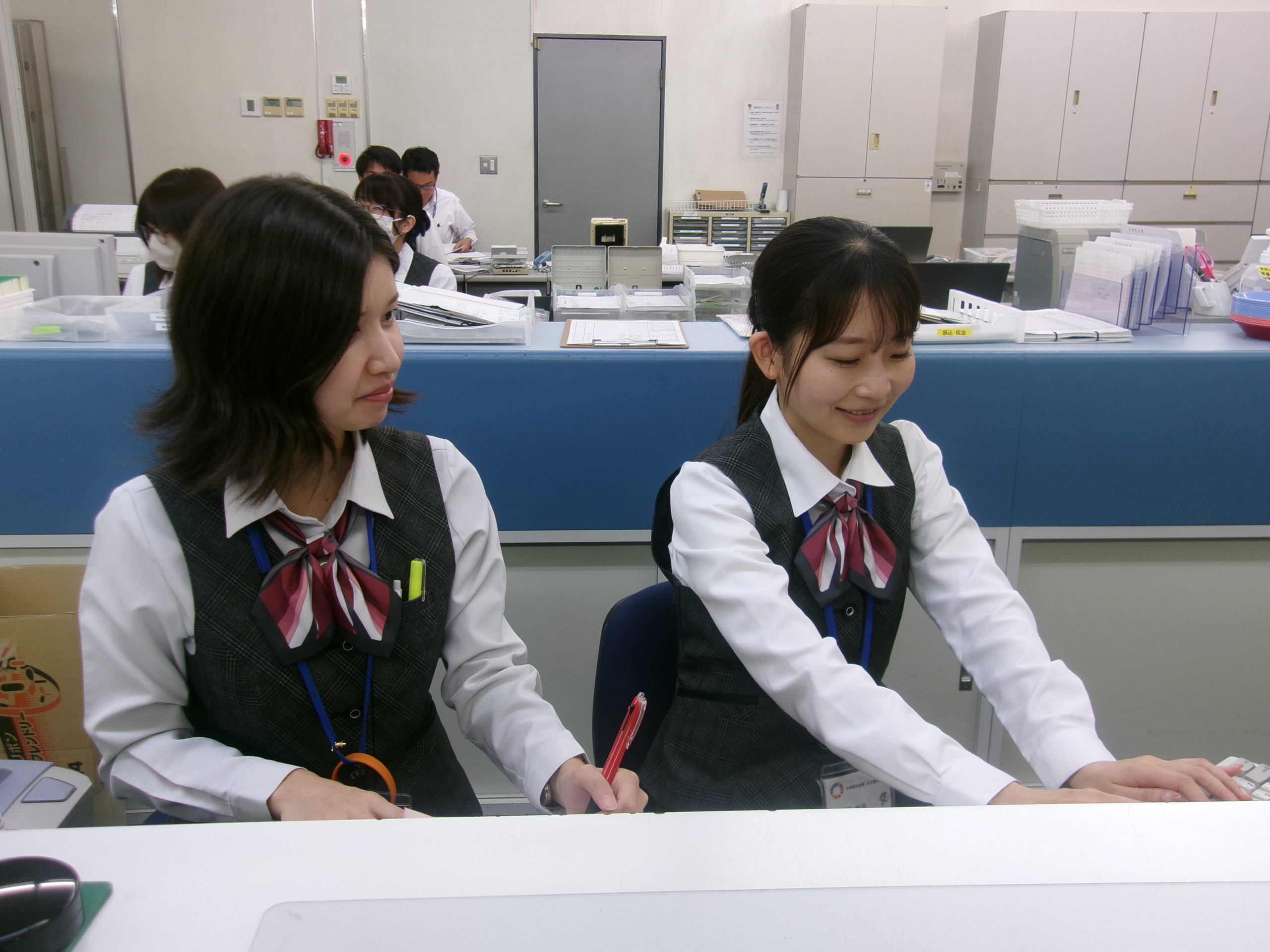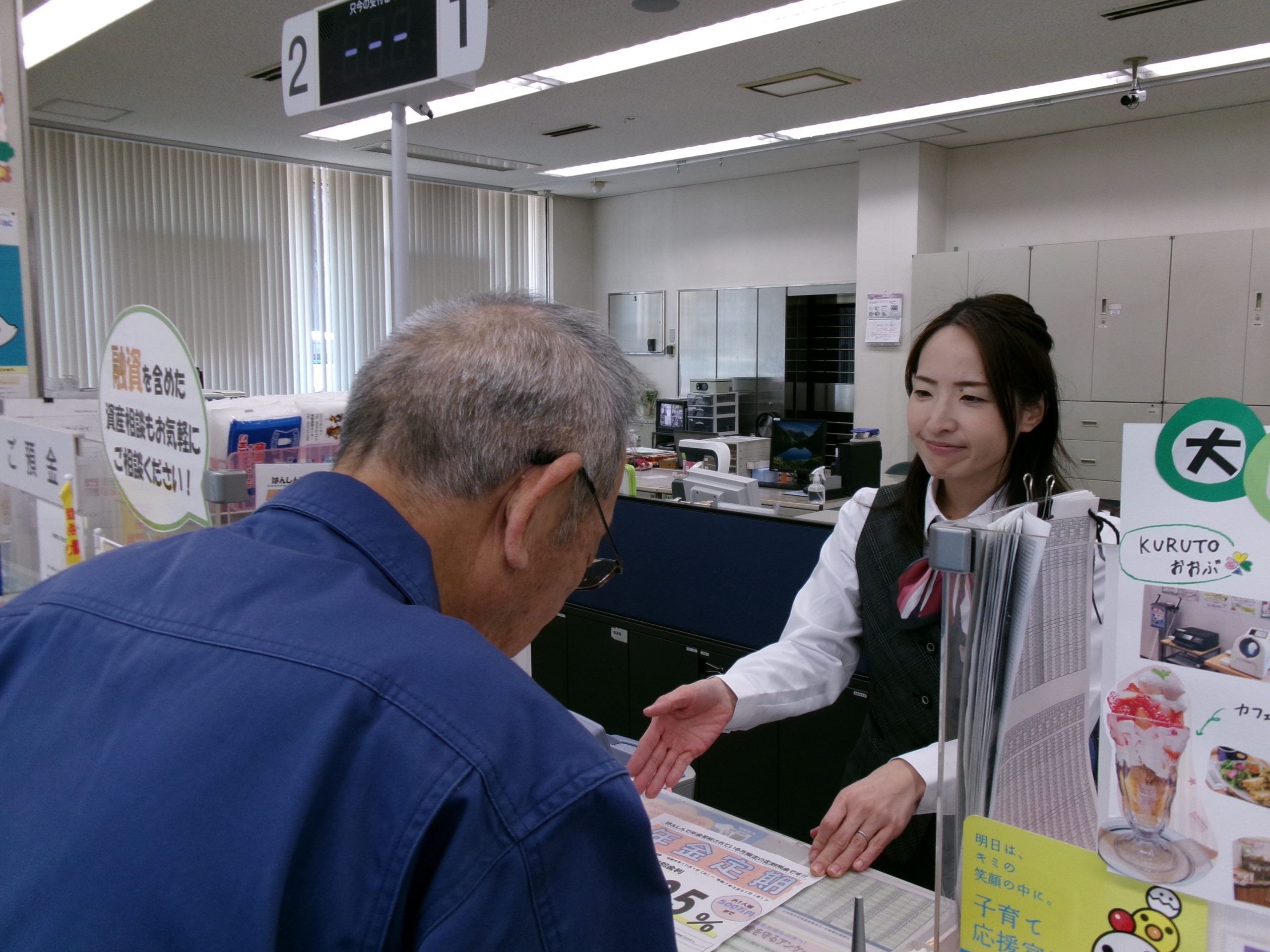 テラー係として、店内の窓口(カウンター)に来店されたお客さまの対応をししていただくお仕事です。